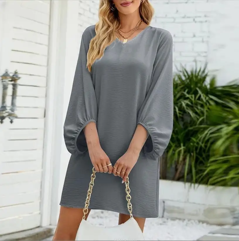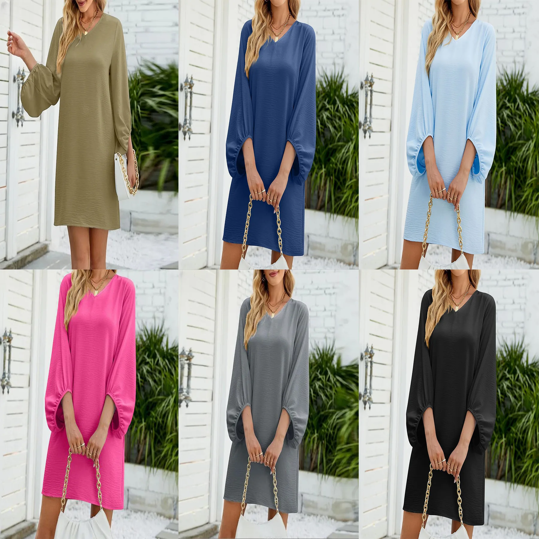 Women's Casual Loose Dress Solid Color Embroidered Plain Dyed Spring Autumn Long Sleeves Dress